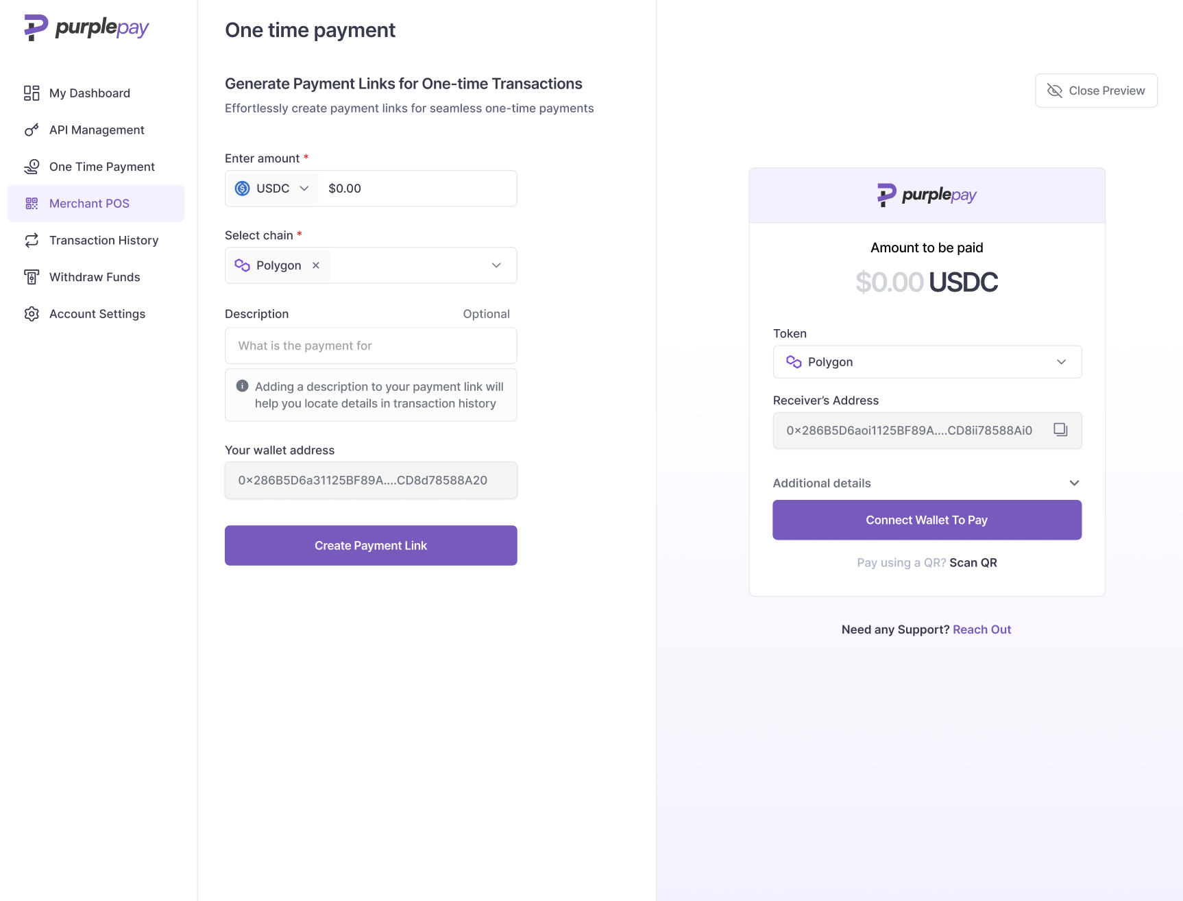 If you're a developer, you can also generate your API key in settings for various integration options. Please learn more [here](https://purple-pay.gitbook.io/purple-pay/developers/api-key).