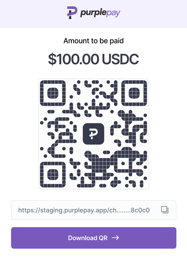 Select the chain you wish to receive payment on, enter the amount and add a small description for the invoice. \